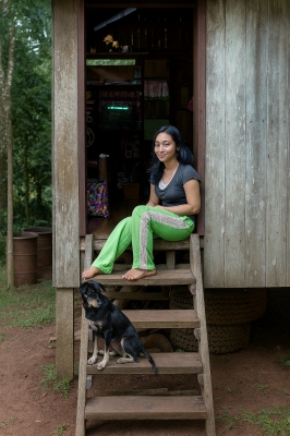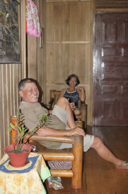 壁には銃が吊るされ、裏庭には乾燥中の魚やタロイモ。