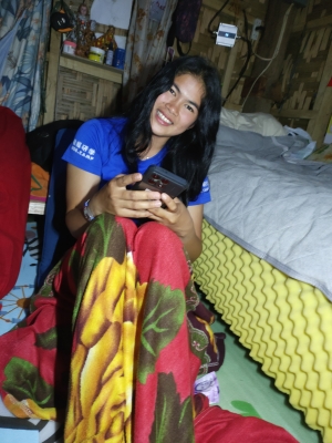 ◆アイビーが放った強烈なジョークに咳き込む用務員/フィリピン流『愛の毛づくろい』
