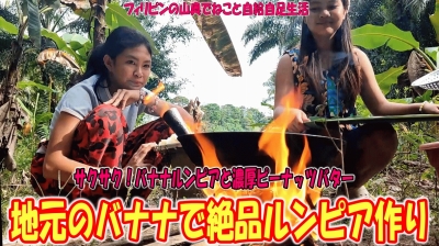 ◆採れたてバナナで「バナナルンピア」作り!特製ピーナッツバターをたっぷりかけて【フィリピンの山奥でねこと自給自足生活】